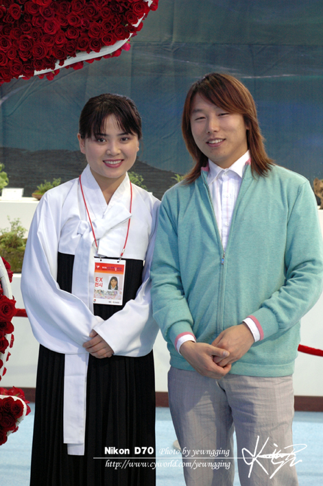 북한부스에서..^^ 안내원이랑.^^ 함찍어봄,,^^