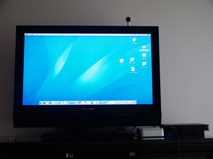 맥미니를 집에 있는 티비와 연결했습니다..