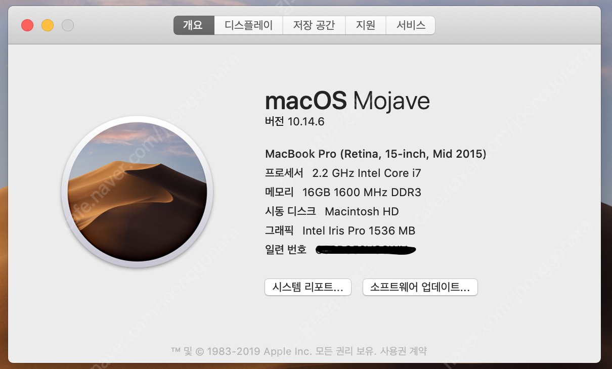 맥북프로2015 15인치(16/256)판매합니당(실사용 or 부품용)