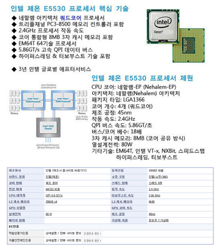 그래서 잘모르고 네할렘 제온 2.4 E5530시퓨를 2개를 구입하고 지금까지 교체도 못해보고 썩히는 중입니다.