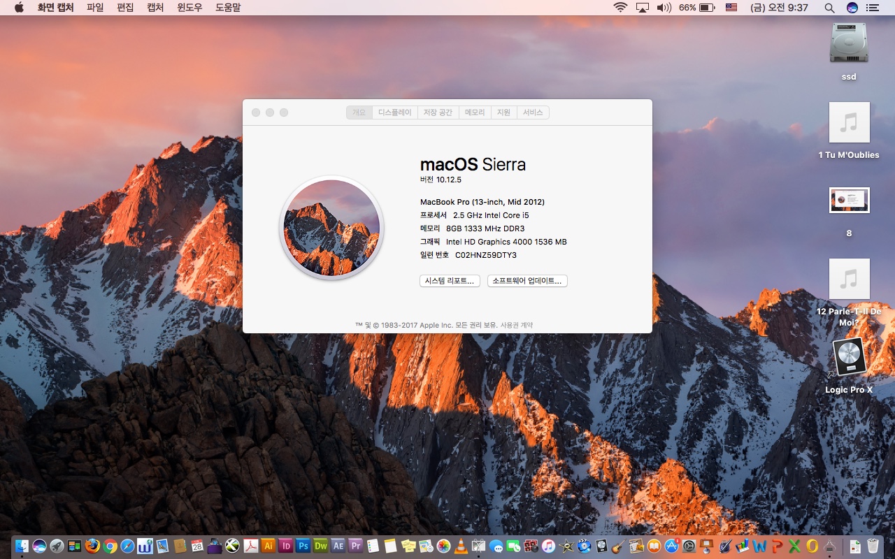 2012년 맥북프로 13인치- 맥 디자인프로그램들이 사진처럼