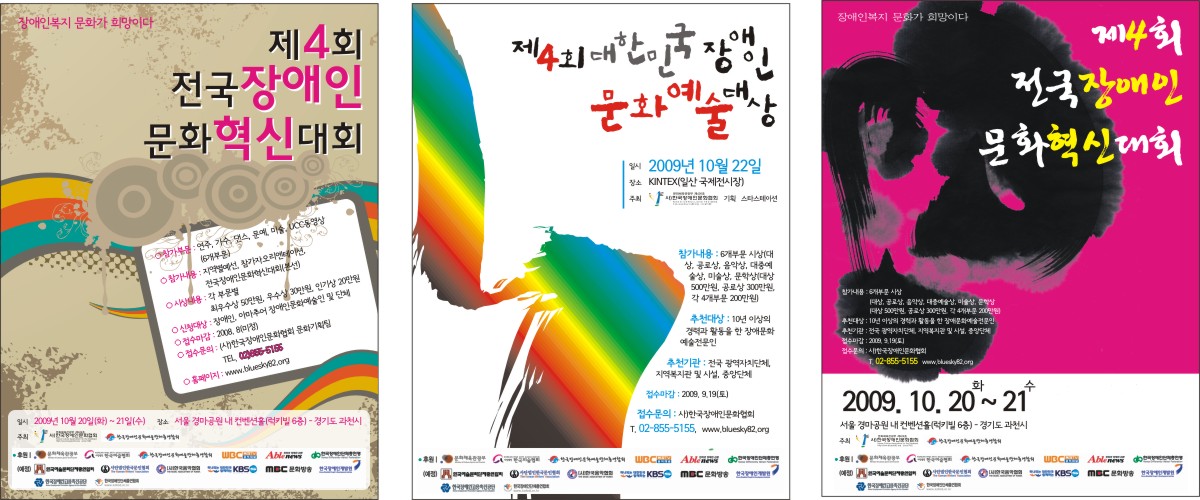 캘리 부탁좀 드려도 될까요? 길선진 일반 3 6329 2009.05.19 11:03 포스터에 제목을 좀 쓰려고 하는데요!!! 제4회 전국장애인문화혁신대회, 제4회 대한민국장애인문화예술대상 요렇게 두개만.. 부탁좀..드리겠습니다. -------------------------------------- 2절 포스터에 사용할 캘리입니다. 대충 컨셉은 첨부파일 정도로 하려고 합니다^^아직 수정하고 있는 단계라.. 미흡한 점이 많습니다.... 예인님 제가 미쳐 글을 보지못했네요^^ 죄송합니다!! 필요한거는 요번주 안으로다가 되면 좋겠지만... 바쁘시다면...조금 늦어져도 상관은 없습니다. 도와주세요~~~~