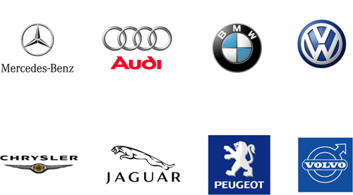 Mercedes-Benz, Audi, BMW, Volkswagen, Chrysler, Jaguar, Peugeot, Volvo