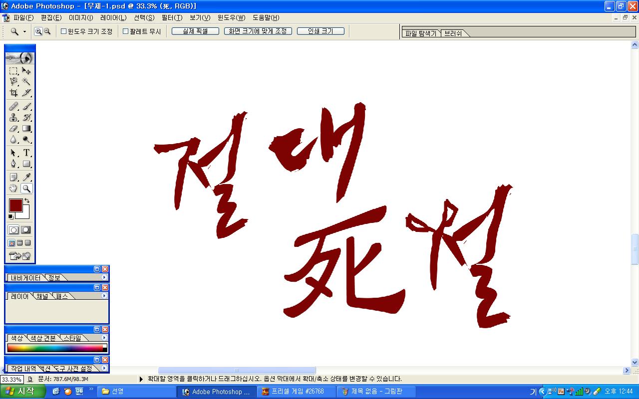 정중히 캘리 부탁드립니다. -_- 류재철 일반 0 6095 2009.11.16 11:18 실력자 분들이 많이 계셔서 이렇게 염치없게 부탁드립니다. - 절대死절 : 첨부한 파일 참고해주시면 감사하겠습니다.(약간 거친느낌? ^^;;) : '절'자의 ㅈ은 가위로...^^;; : 포스터 제작용이라 ai 파일이 필요합니다. 대학동아리 연극공연 포스터로 쓸 예정입니다. 비상업적인 공연이라 이렇게 부탁드립니다.